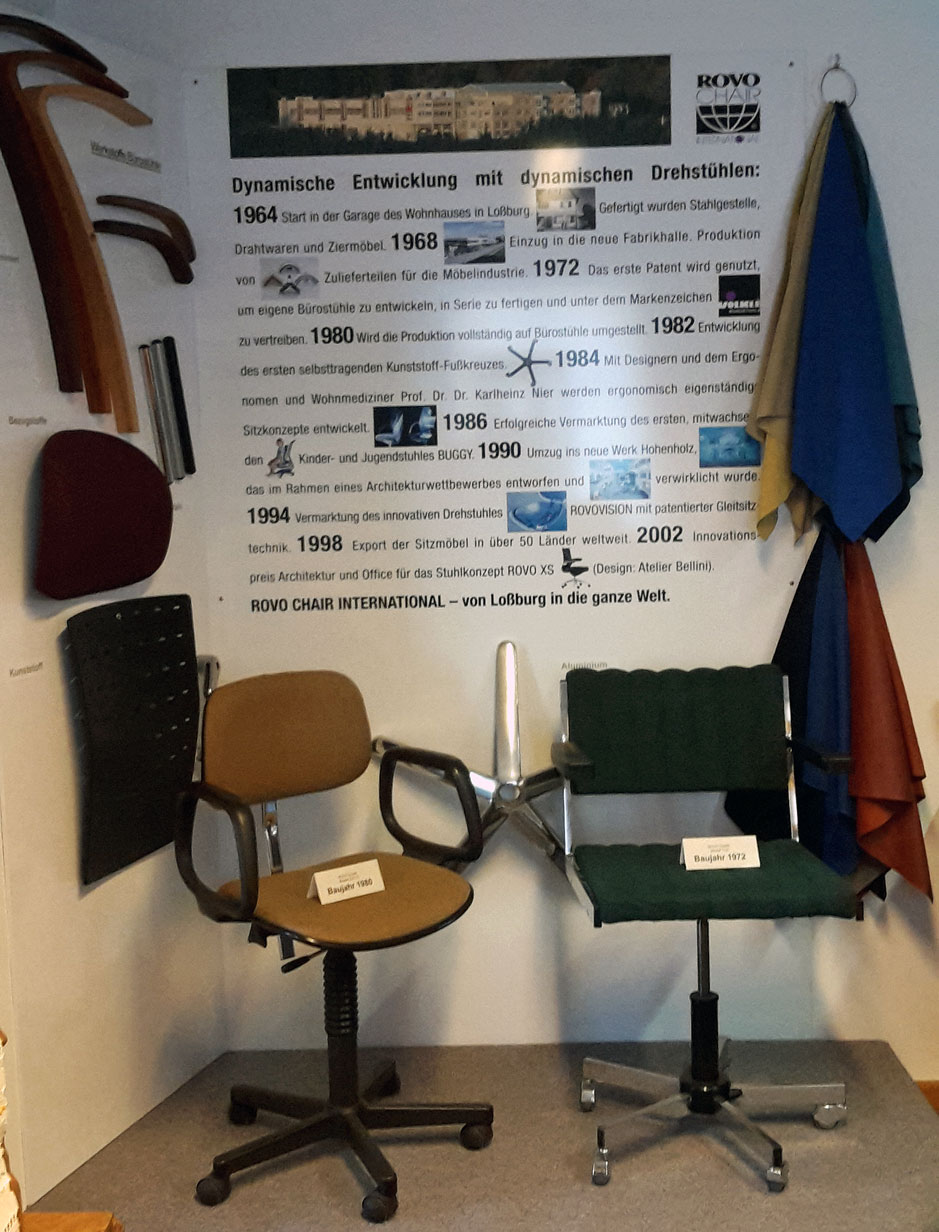 Vier Jahre später wird mit dem Einzug in die neue Fabrikhalle im Härlen eine Produktion von Zulieferteilen für die Möbelindustrie gestartet, aus der das heutige Erzeugnis hervorgeht - der Bürostuhl.